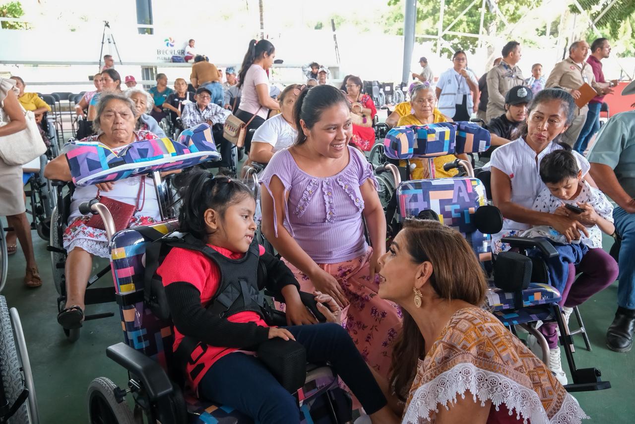Poder y Crítica | Redacción | Para que más personas mejoren sus condiciones de vida, la gobernadora Mara Lezama Espinosa encabezó la entrega de 93 sillas de ruedas y apoyos funcionales federales, durante una ceremonia en la Unidad Deportiva “Serapio Flota Mass”.