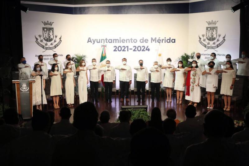 Yucatán, 02 septiembre; poderycrítica.-El Gobernador Mauricio Vila Dosal acudió esta noche a la sesión solemne del Cabildo del Ayuntamiento de Mérida en la que rindió compromiso constitucional Renán Barrera Concha como presidente municipal para el período 2021 – 2024.