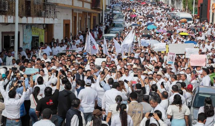 PODER Y CRÍTICA | REDACCIÓN | El gobernador de Tabasco, Javier May Rodríguez, expresó su agradecimiento a quienes participaron en la marcha por la paz y la seguridad, destacando que la unidad en torno a la grandeza del estado es un valor común entre los tabasqueños. Durante su intervención, también enfatizó que respeta las opiniones diferentes y el derecho a la libertad de expresión.