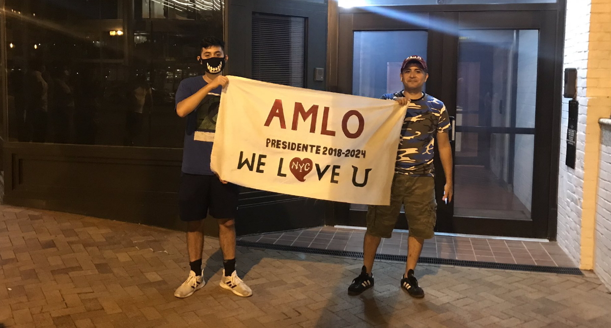 EU, 08 julio; poderycritica.-Decenas de migrantes mexicanos en Estados Unidos permanecen afuera de la Casa Blanca en espera del presidente López Obrador, quien tendrá un primer encuentro con Trump. Con pancartas y porras, demuestran su apoyo al mandatario mexicano.