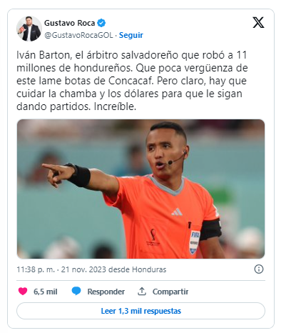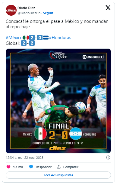Estas publicaciones estuvieron acompañadas por una imagen del partido donde Henry Martín pelea el esférico contra un rival hondureño, y después por la de Iván Barton. Previamente, la cuenta oficial del diario había cuestionado las determinaciones del silbante en el partido.