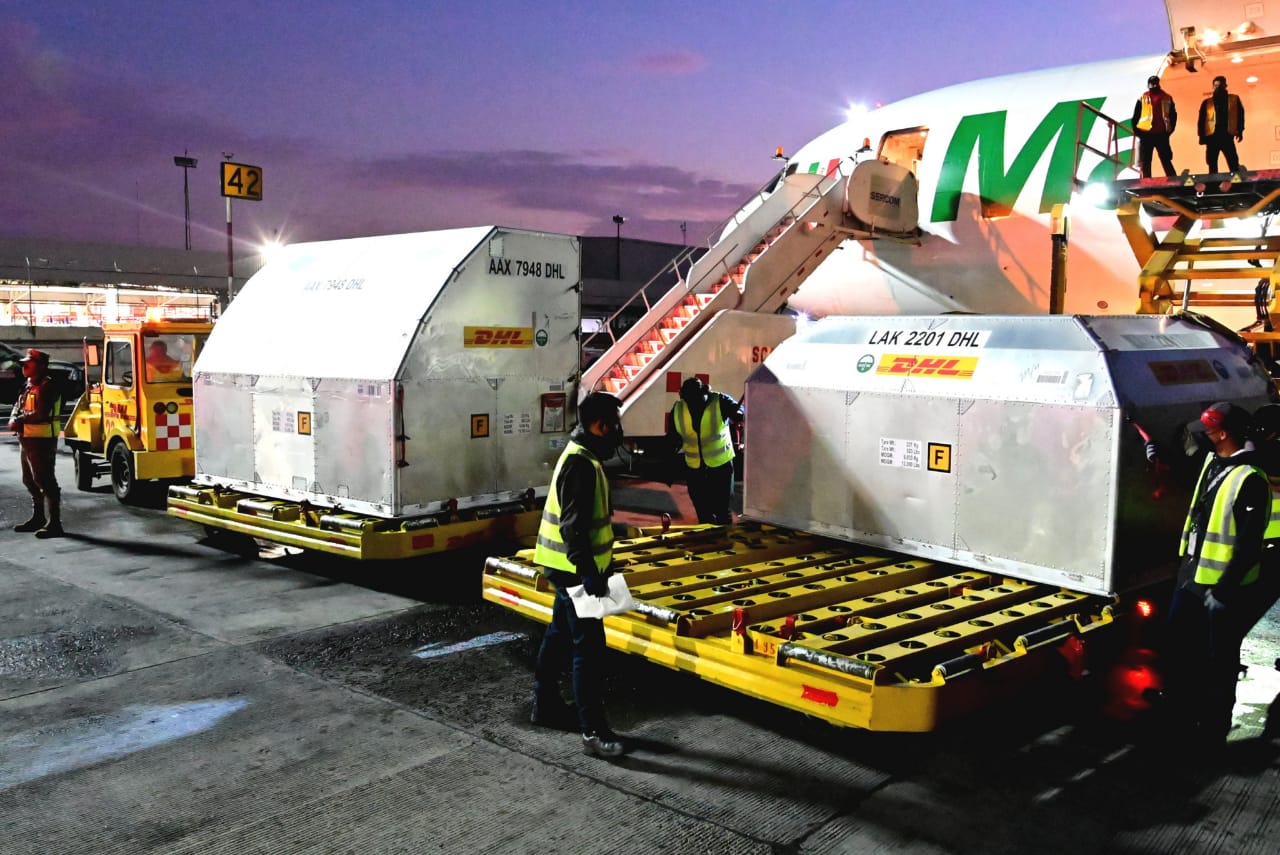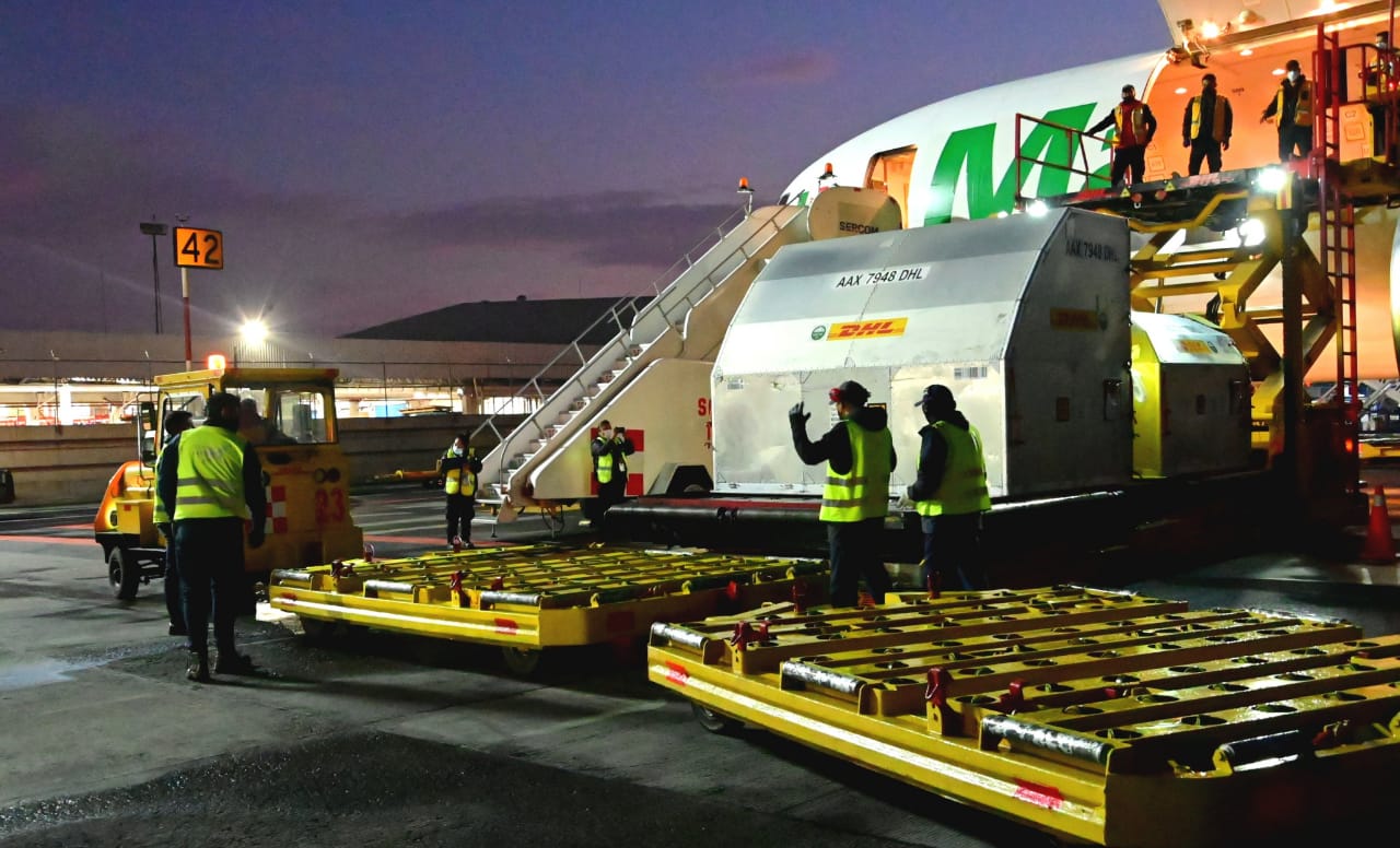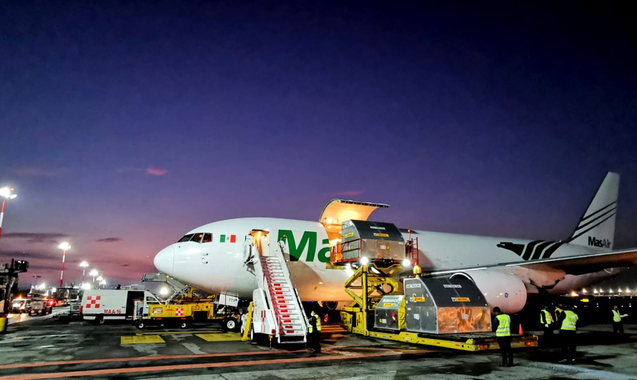 El embarque número 55 de este laboratorio arribó a la terminal 1 del Aeropuerto Internacional de la Ciudad de México (AICM) “Benito Juárez”, en el vuelo MAA1811 procedente de Los Ángeles, California.