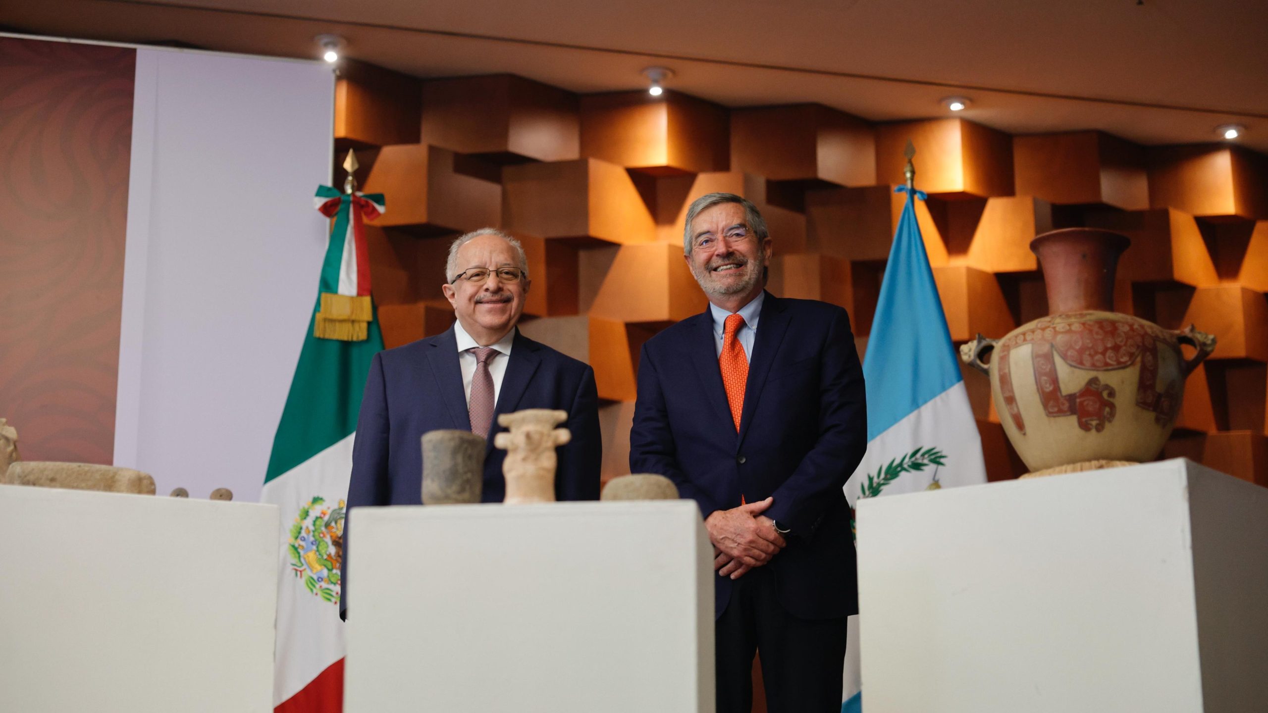En la reunión, se restituyeron 54 piezas arqueológicas guatemaltecas que se encontraban en México y se firmó un Acuerdo sobre Cooperación Cultural, Preservación y Acceso al Patrimonio Digital.
