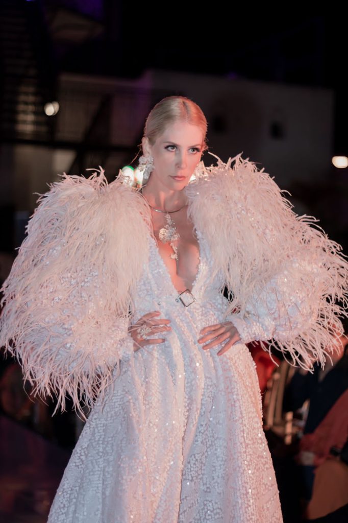 La pasarela inició con la colección de Gustavo Pucheta con accesorios de Arrt Joyas, quien con sus creaciones nos transportó a un mundo maximalista y experimental con piezas dramáticas y espectaculares.