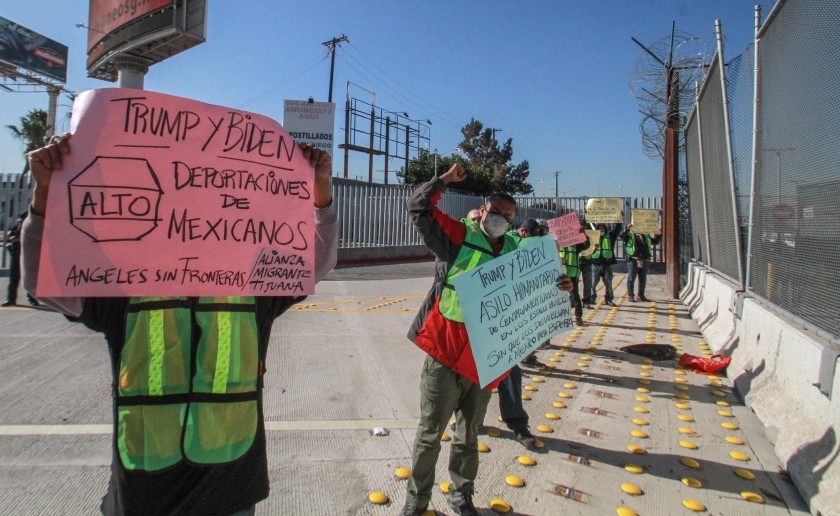 EU, 19 diciembre; poderycrítica.-Grupos de migrantes varados en la frontera mexicana se manifestaron este viernes frente al acceso vehicular de la Garita Internacional de San Ysidro, California, para enviar un mensaje al presidente electo de Estados Unidos, Joe Biden.