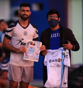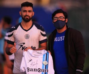 Cancún, Q. Roo, Domingo 08 de Noviembre del 2020, poderycrítica.- Rodrigo Alcocer hizo su sueño realidad: conocer personalmente a Miguel Basulto, defensa de Cancún FC y recibir de manos del tapatío, un jersey oficial del equipo, gracias a su triunfo en el concurso de dibujo, con motivo del Día de Muertos: «Desde que llegó a Cancún, lo seguí desde el primer momento. Es un equipo con el que me siento identificado. Fui de los primeros en pedir las playeras de Cancún FC. Convivir con ellos es una experiencia muy padre, y qué mejor que estrenar una nueva playera», reconoció el fan cancunense de 23 años de edad, contador de profesión.