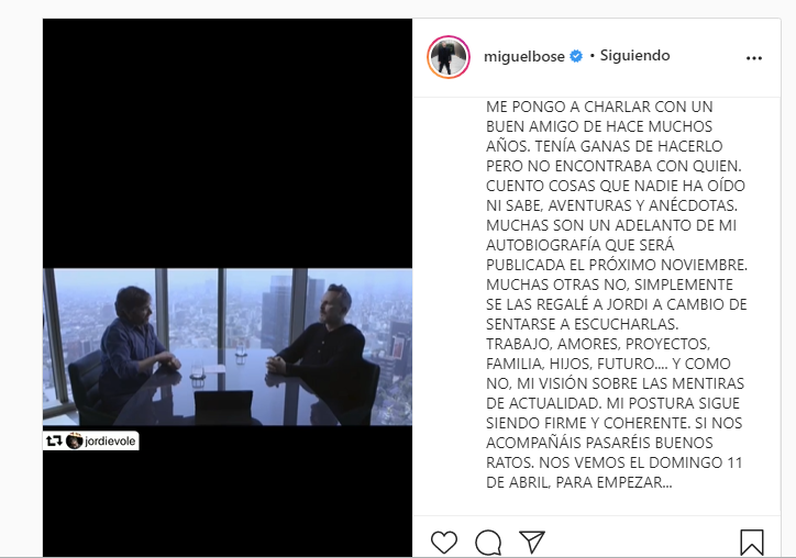 Cancún, Q. Roo, miércoles 07 de abril de 2021, poderycrítica.- El cantante de grandes éxitos como “Aire soy”, “Como un Lobo” o “Morena Mía”; Miguel Bosé dio a conocer por medio de sus redes sociales un pequeño fragmento de la entrevista que le otorgó a uno de sus viejos amigos, Jordi Évole.