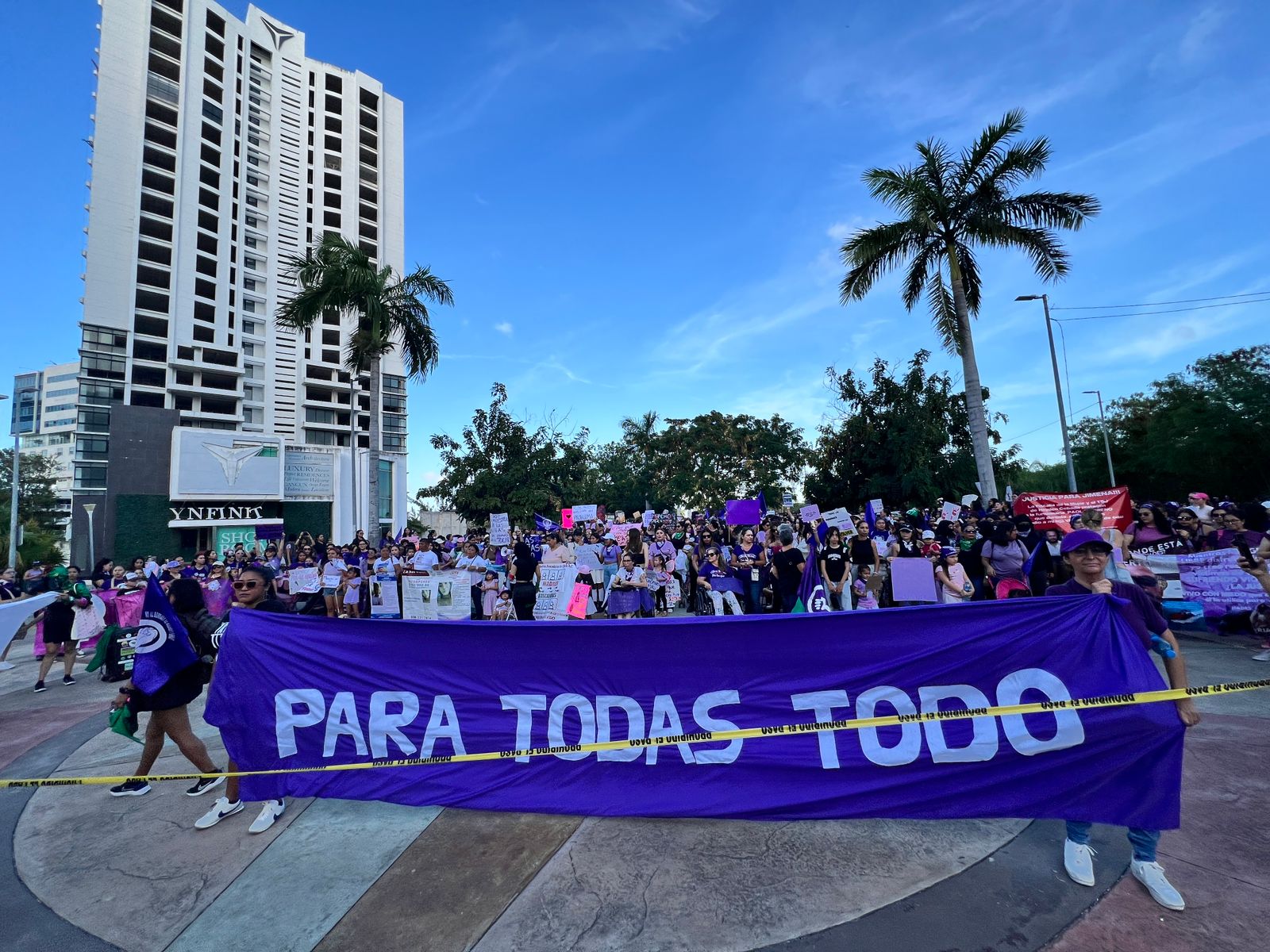 Miles de mujeres marchan por el Día Internacional de la mujer en Cancún