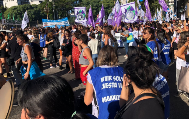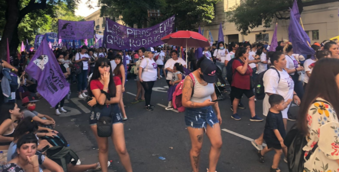 Manifestantes se movilizan en las inmediaciones del Congreso en el marco de la conmemoración del Día Internacional de la Mujer