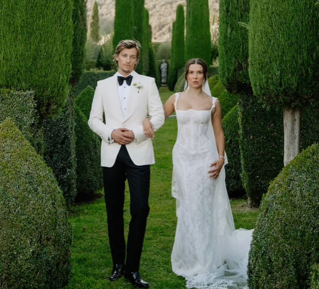 Millie Bobby Brown y Jake Bongiovi, hijo del famoso cantante Jon Bon Jovi, anunciaron su compromiso en 2023, algo que la actriz confesó a través de sus redes sociales. Desde entonces, la pareja ha mantenido su relación de manera discreta, lo que hizo que la revelación de su boda generara una gran sorpresa entre sus seguidores.
