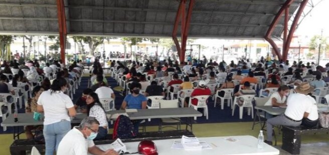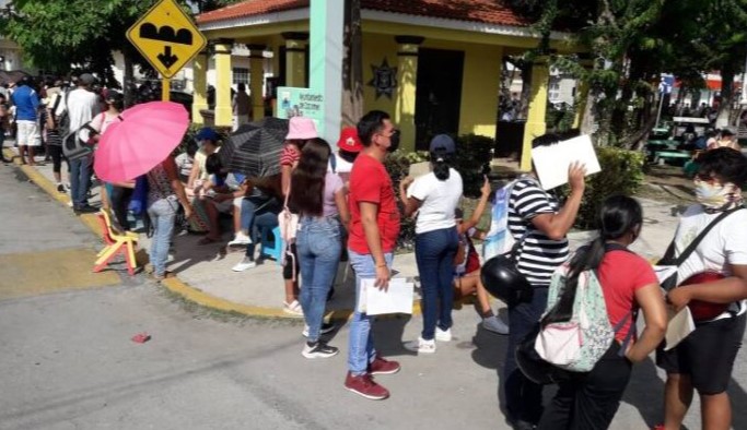 Cozumel, Q. Roo, lunes 02 de agosto de 2021, Poderycrítica.- Desde horas antes del inicio de la jornada de vacunación contra el COVID-19, cientos de ciudadanos entre los 18 y 29 años de edad, acudieron a formarse, dando lugar a filas que le daban la vuelta a la manzana en ambos domos asignados para este programa.