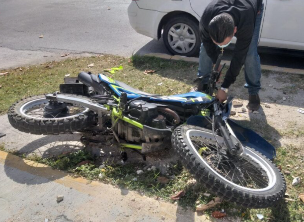 En su reporte, el agente de tránsito que tomó conocimiento del accidente, asentó que el motociclista transitaba sobre la Avenida Leona Vicario procedente de Rancho Viejo, a bordo de una unidad marca Italika color azul, con placas 46AYA1.