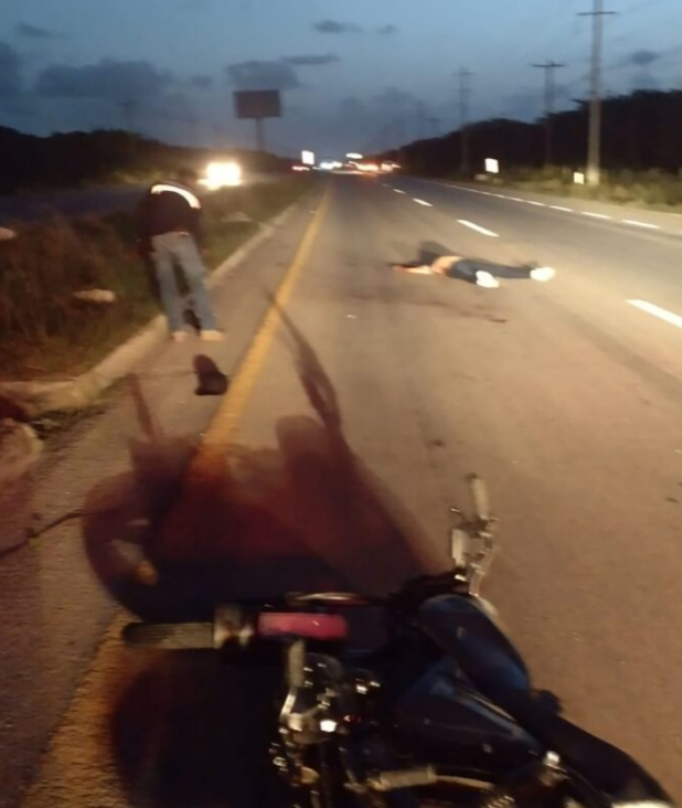 PODER Y CRÍTICA | REDACCIÓN | Trágica muerte tuvo un motociclista tras sufrir un accidente en un tramo de la carretera federal, a la altura del kilómetro 237, cerca del parque Xel-Ha.