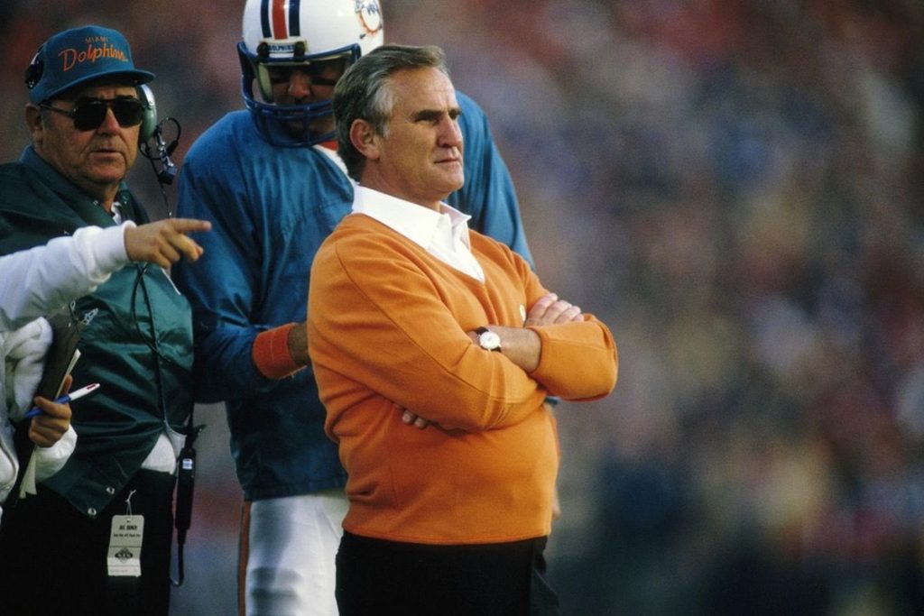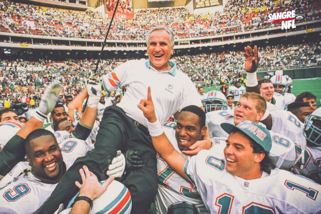 Shula llegó a Miami en 1970 para dirigir a los Dolphins hasta su retiro en 1995 con quienes logró los Súper Bowls VII y VIII; además dirigió la famosa temporadas perfecta del equipo en 1972.