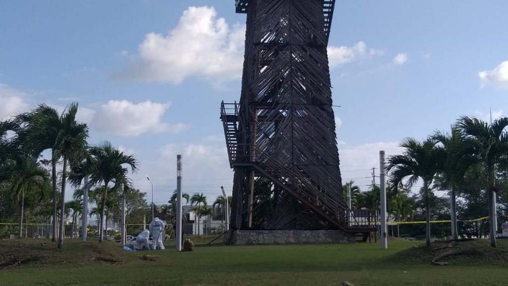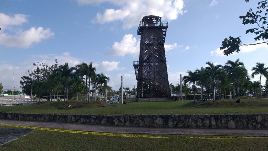 Este día, los números de emergencia recibieron el reporte sobre una persona que estaba tirada sin signos vitales a un costado de la antigua torre que tiene alrededor de 15 metros de altura, ubicada en la glorieta que está en el cruce de las avenidas Bulevar Luis Donaldo Colosio, Kabah, y Tulum.