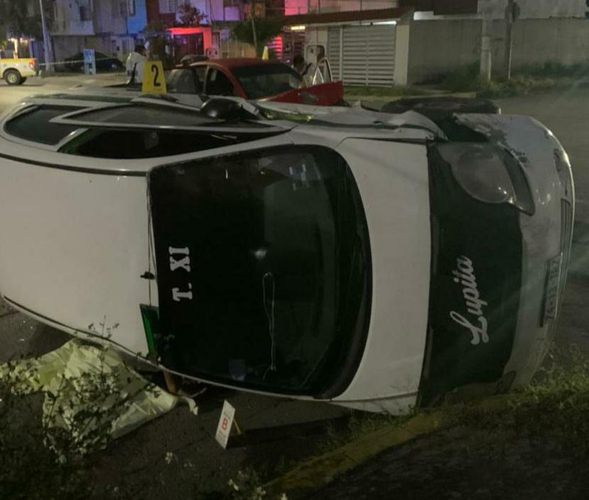El taxi acabó volcado y el chófer perdió la vida, en el lugar.