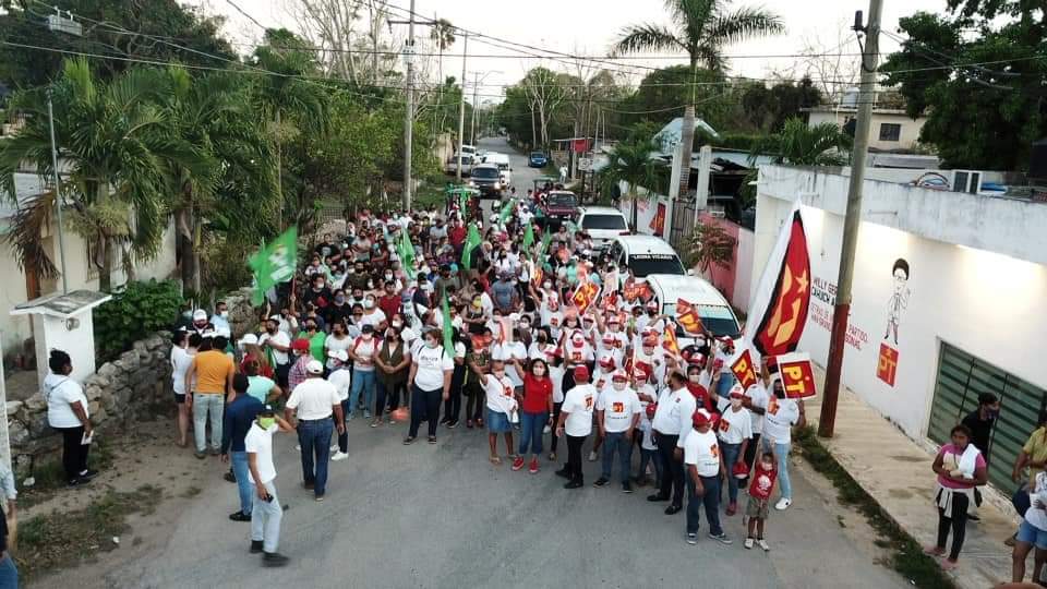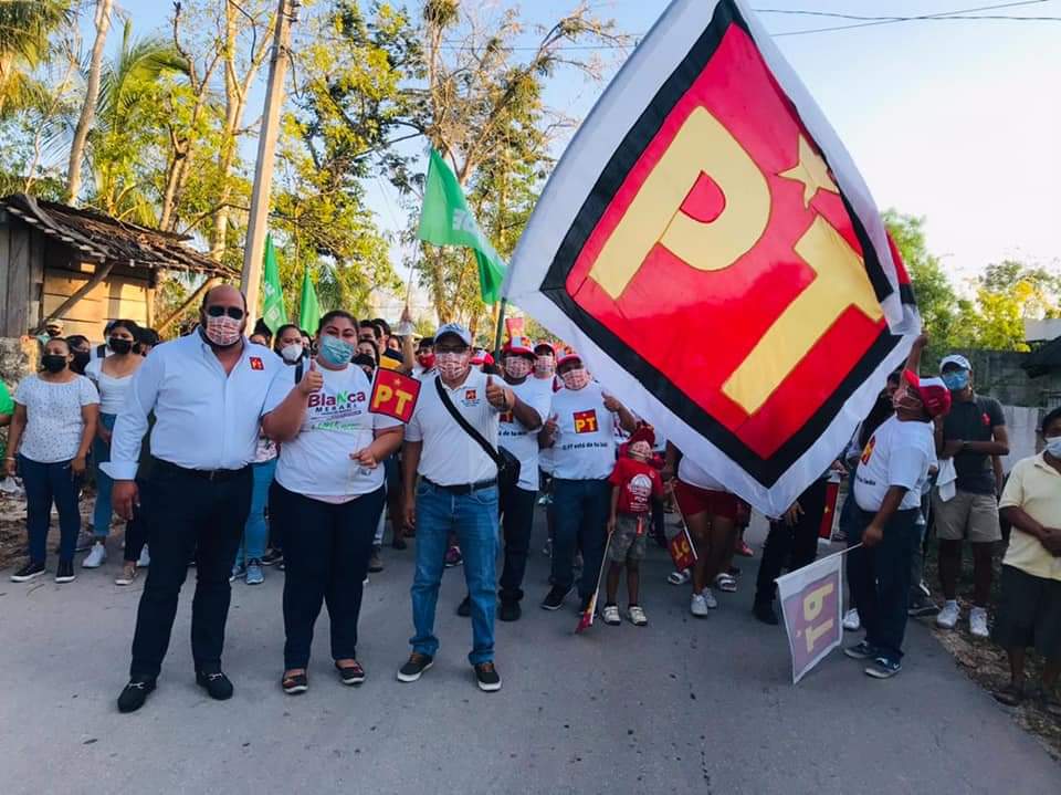 Leona Vicario, Q. Roo; martes 27 de abril del 2021, poderycritica.- El Partido del Trabajo mostró su fuerza y organización en apoyo a la candidata de la Coalición «Juntos Haremos Historia», Blanca Merari.