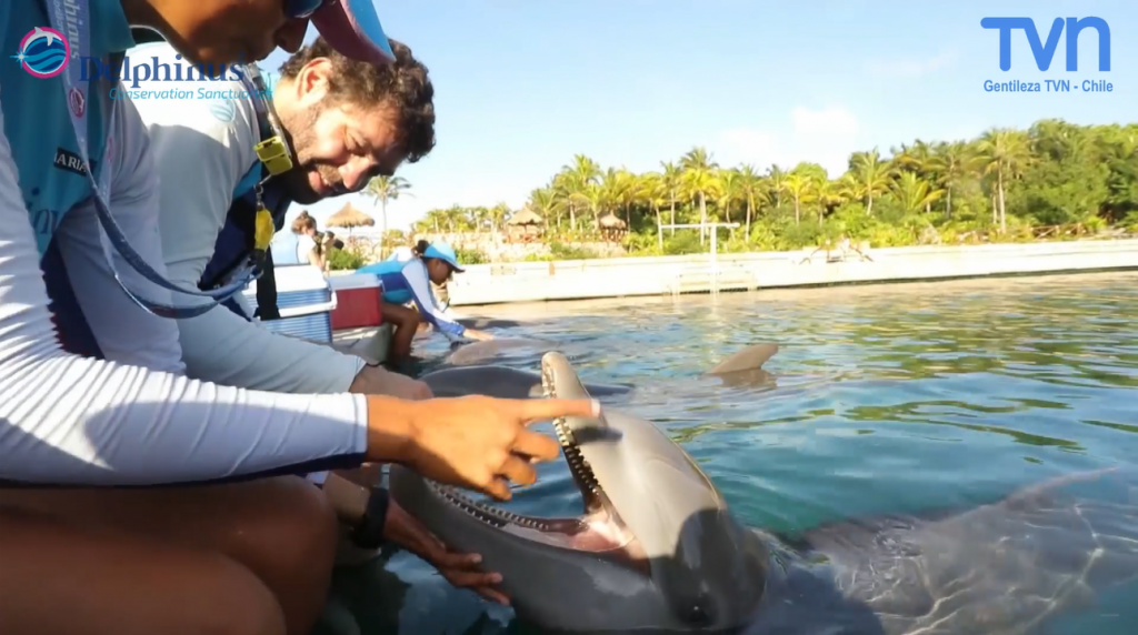 Cancún, Q. Roo, martes 13 de julio de 2021, poderycrítica.- Lanza Delphinus, a través de sus redes sociales, el serial “Delfín del Mundo”, una producción conducida por el conocido “bichólogo” (entomólogo) Alfredo Ugarte, el veterinario y educador ambiental televisivo Felipe Sotomayor Stephens y el realizador Jorge Miethke para TVN (Televisión Nacional de Chile), la mayor cadena de televisión de ese país sudamericano, en la que este grupo de trabajo visita el Caribe Mexicano para aprender de los expertos en salud y cuidado de los mamíferos marinos de Delphinus para atender a sus contrapartes en el sur del continente.