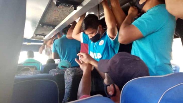 MUESTRAN A TRANSPORTISTAS VIAJANDO CON SOBRECUPO EN LA CARRETERA MACUSPANA-VILLAHERMOSA