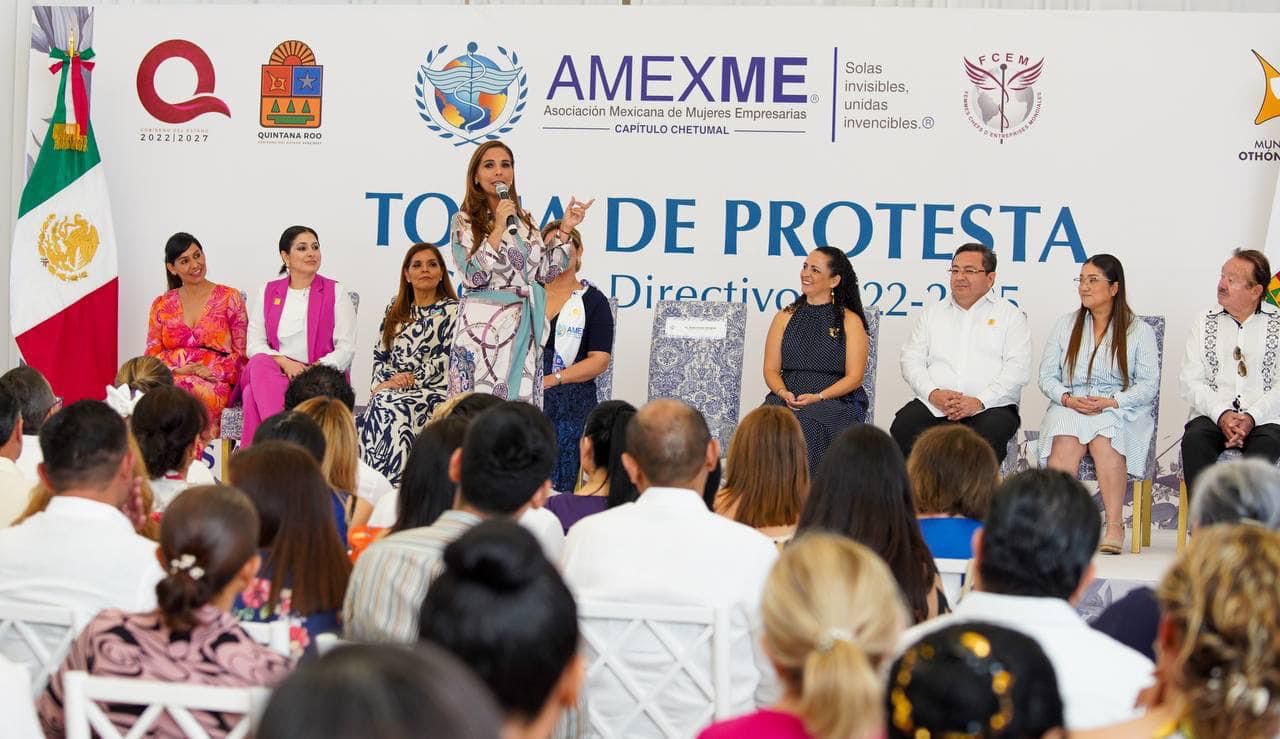PODER Y CRÍTICA | REDACCIÓN | Durante la toma de protesta de la presidenta y consejo de la Asociación Mexicana de Mujeres Empresarias (Amexme) para el periodo 2022-2025, capítulo Chetumal, la gobernadora Mara Lezama Espinosa reiteró que con el trabajo de todas y todos la capital del estado va a recuperar su brillo, para que las familias vivan en mejores condiciones.