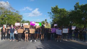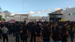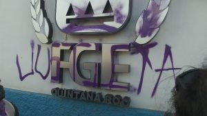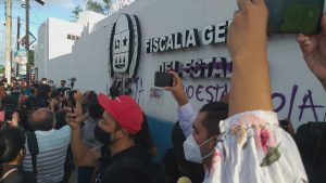 MUJERES MARCHAN Y SE MANIFIESTAN EN LA FGE DE CANCÚN PARA EXIGIR JUSTICIA POR LA MUERTE DE UNA JOVEN