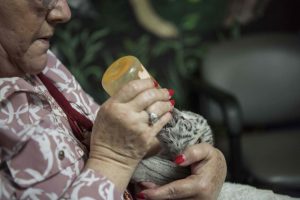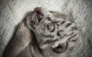 Este ejemplar fue llamado «Nieve» y pesó 954 gramos; es la hija de dos tigres de Bengala de pelaje amarillo y negro, pero significó un desafío para los cuidadores ya que fue rechazada por su madre.
