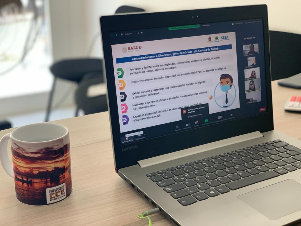 En una reunión virtual en la que estuvieron presentes la directora y subdirectora de los Servicios Estatales de Salud de Quintana Roo, Myriam Ortiz Enríquez y Yadira Hernández Fuentes también se dio a conocer el estatus de la ocupación de camas hospitalarias y la capacidad de los nosocomios de los que es fundamental garantizar los servicios para todos los Quintanaroenses, así como las medidas de prevención que se están tomando para mantener la salud de los solidarenses y turistas.