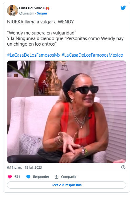 La actriz comparó a Wendy con algunas personas que conoce del ambiente nocturno y los antros, sugiriendo que hay otras personas con comportamientos similares en esos lugares. Según Niurka, hay conductoras en los antros que llevan todo el show de la noche y se destacan con su actitud, al igual que lo hace Wendy en «La Casa de los Famosos».