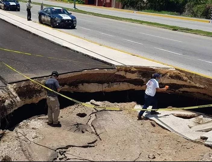 Playa del Carmen, Q. Roo, Jueves 18 de Junio de 2020, poderycrítica.- El hundimiento que se registró el pasado 13 de este mes en la carretera federal Tulum-Playa del Carmen fue debido a la presencia de un cenote debajo del tramo carretero, y no un socavón, de acuerdo con espeleólogos que realizaron un recorrido en la zona.