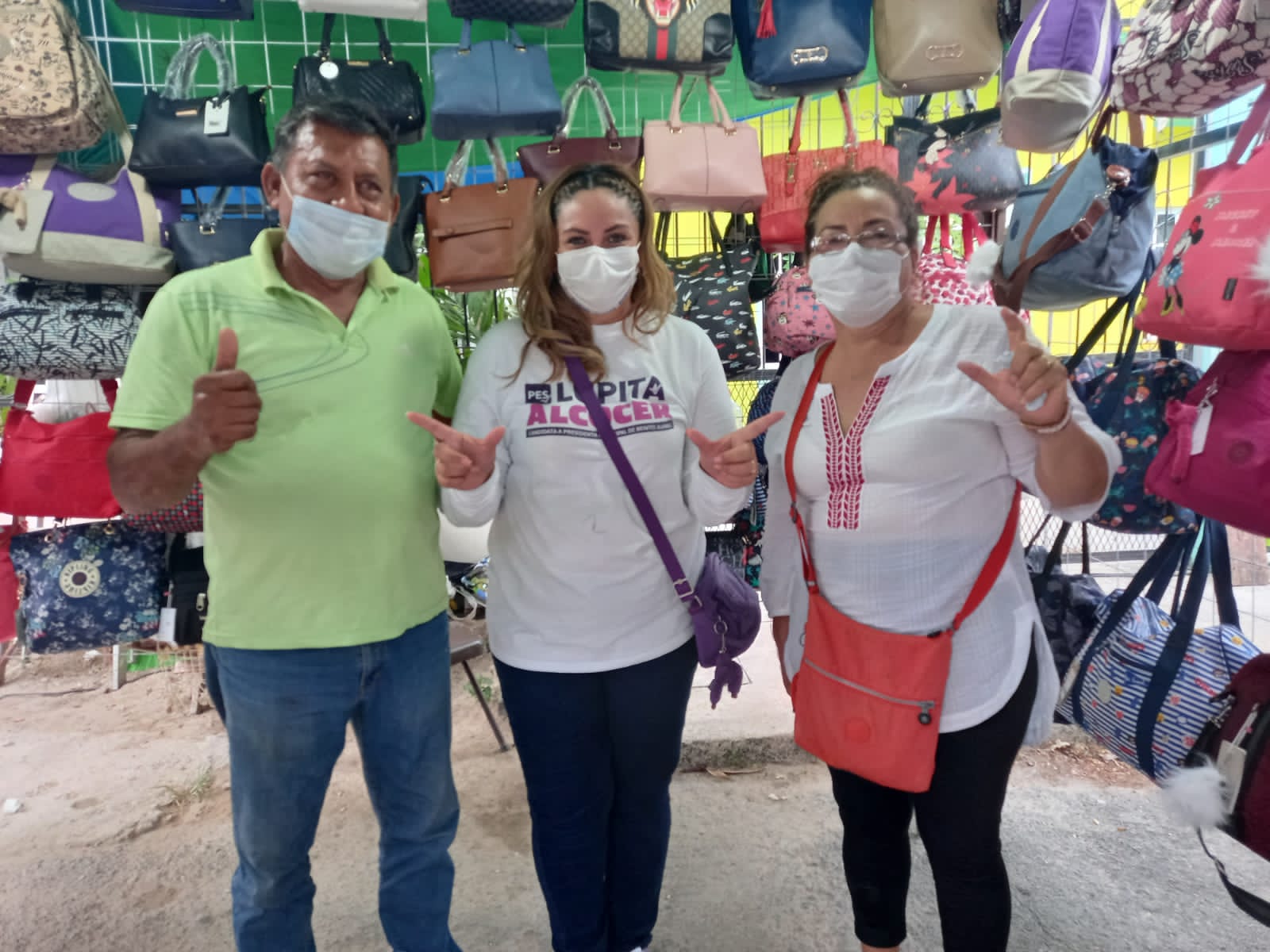 Lupita Alcocer, además visitó más tarde en tianguis de la Región 94, en donde escucho los problemas de los comerciantes ambulantes en donde se comprometió con ellos para apoyarles en el tema de cobros y seguridad.