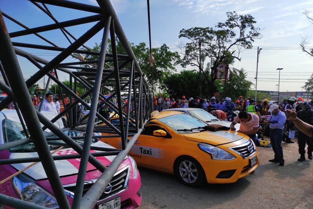 Explicó que el accidente se debió a que se reventó uno de los tensores del brazo de la grúa, la cual cayó sobre los vehículos y los heridos fueron trasladado a un hospital particular donde fueron atendidos debidamente y están fuera de peligro.