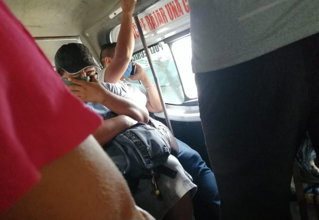 Es decir, hay unidades que aún llevan pasajeros de pie, cuando esto quedó prohibido, a fin de evitar contagios masivos de Covid-19.