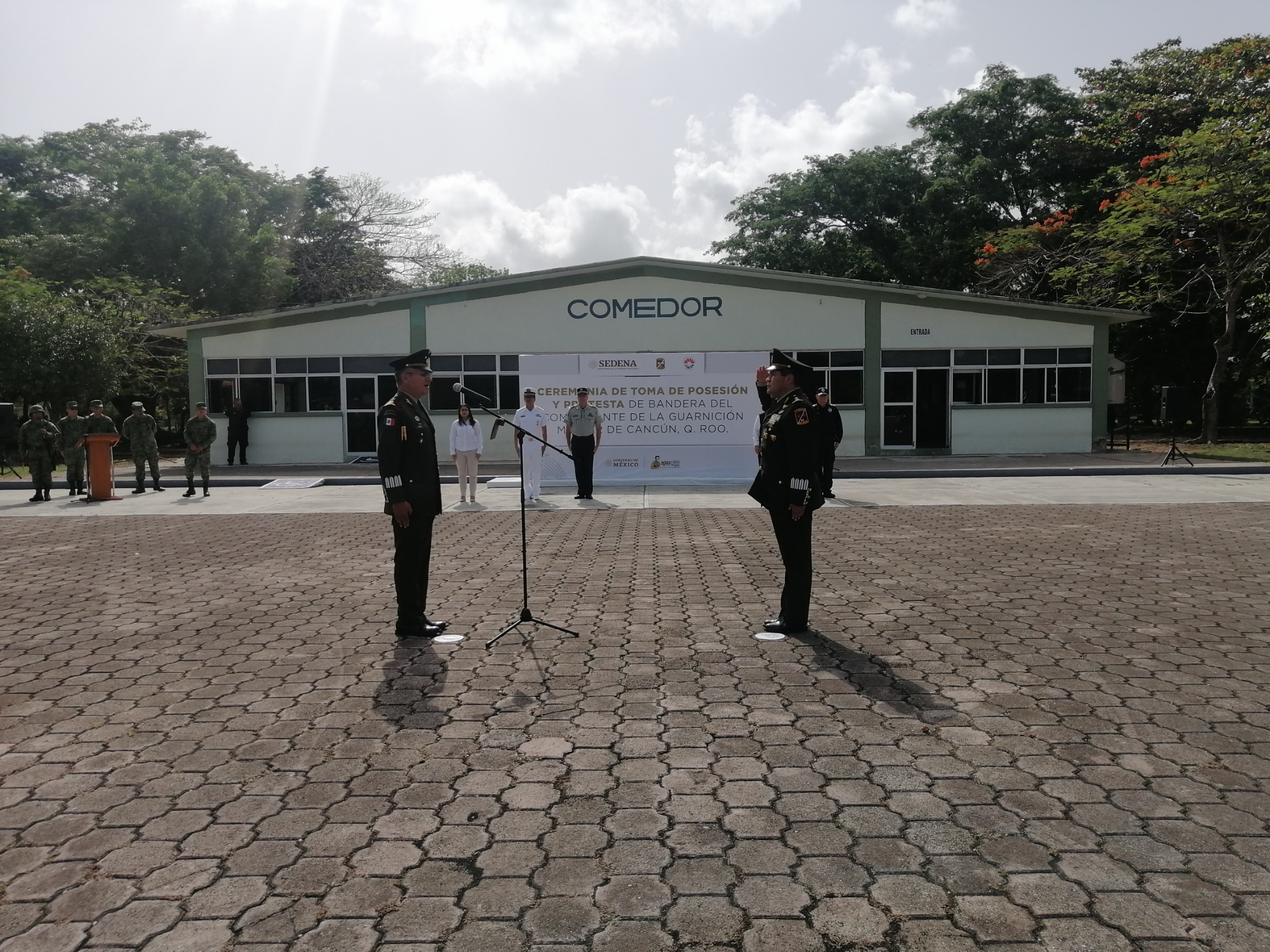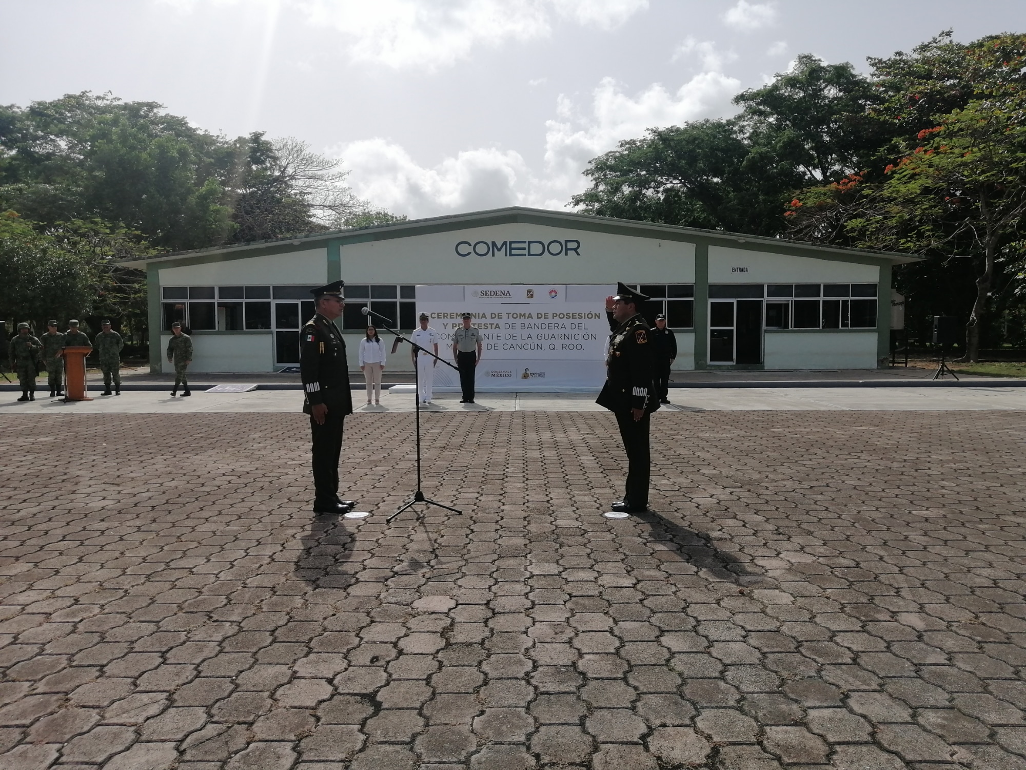 Sobre el particular de acuerdo con lo que establece el Reglamento del Ceremonial Militar la toma de Posesión y la protesta de Bandera correspondiente, se realizó a las 09:00 horas del 11 de junio del 2022 en las instalaciones que ocupa la Guarnición Militar de Cancún ubicada en la carretera de Cancún-Mérida Kilómetro 7.5 de esta ciudad