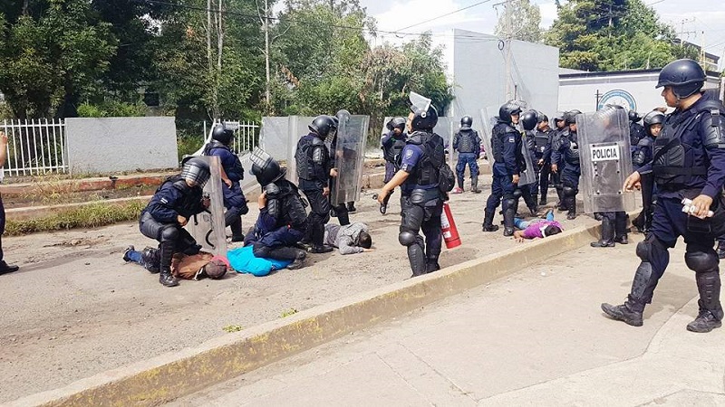 México, 12 septiembre; poderycritica.-Al menos ocho elementos de la Policía de Michoacán resultaron lesionados luego de ser atacados con piedras, palos y cohetones por normalistas en la Tenencia de Tiripetío, municipio de Morelia.
