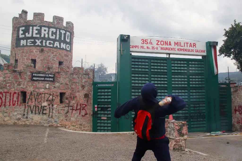 PODER Y CRÍTICA | REDACCIÓN | Estudiantes de la Federación de Estudiantes Campesinos Socialistas de México (FECSM) atacaron este lunes con petardos y bombas molotov la sede de la 35 Zona Militar en Chilpancingo, Guerrero, como parte de las movilizaciones previas al 11º aniversario de la desaparición de los 43 normalistas de Ayotzinapa.