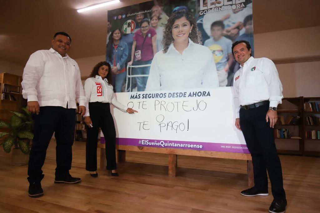 “Es irónico que vivamos un infierno en este paraíso, así sucedió en Acapulco, que fue ejemplo de turismo y empleo, y la inseguridad lo acabó, Cancún no está exento de llegar a lo mismo. ¡actuemos para evitarlo!” mencionó Rolando Zapata Bello, ex gobernador de Yucatán, quien acompañó a la candidata a la gubernatura. Ya no más retraso en la primera obligación que tiene el estado para con sus conciudadanos, su protección; por eso el día de hoy, Leslie Hendricks Rubio, anuncio que en su gobierno, a partir los últimos meses de este año, como gobernadora constitucional de Quintana Roo, comenzará el programa “O te protejo o te pago”, en la que quien quede desprotegido, será compensado.
