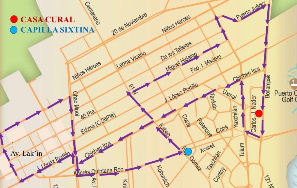 El trayecto comenzará a las 5:30 horas desde la Casa Cural entre las avenidas Bonampak y Náder, para de ahí tocar varias zonas.