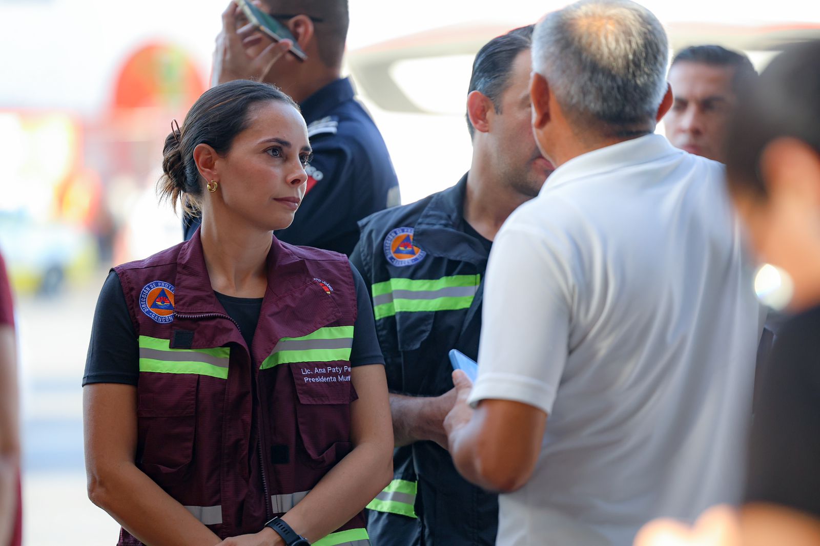 Con el respaldo del Cabildo y los servidores públicos de la Dirección de Transporte y Vialidad, Tránsito, Seguridad Ciudadana, Secretaría General y Protección Civil, la presidenta municipal de Cancún se presentó en el cruce de la Av. López Portillo con calle 13 norte, a la altura de la cancha de la Rehoyada, mientras en otros puntos de la ciudad lo hacían otros grupos de inspección.