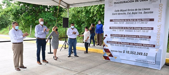 Las acciones se multiplican. En Pueblo Nuevo, una de las colonias populares de mayor extensión en la cabecera, se concreta la rehabilitación integral de la calle Joaquín Cuevas, y más tarde, en la ranchería Río Seco primera sección, se materializa la puesta en servicio de la vía de acceso a la base de la Guardia Nacional.