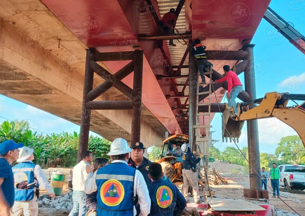 PODER Y CRÍTICA | REDACCIÓN | Un obrero sufrió un accidente mientras realizaba trabajos de soldadura debajo del Puente Grijalva II, en Villahermosa, poco antes de que se habilitara para la circulación vehicular tras los trabajos de ampliación.