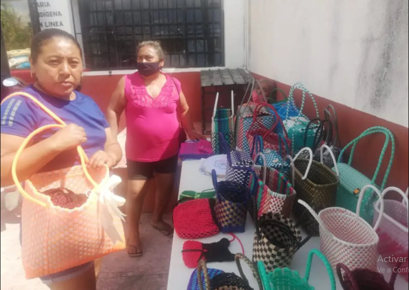 Lázaro Cárdenas, Q. Roo, Viernes 09 de Abril de 2021, poderycrítica.- Un grupo de mujeres que apoya de manera recurrente en las actividades de la Confederación Revolucionaria de Obreros y Campesinos (CROC), instalaron un puesto de ventas de bolsas artesanales, con la finalidad de reactivar la economía de las familias.