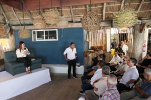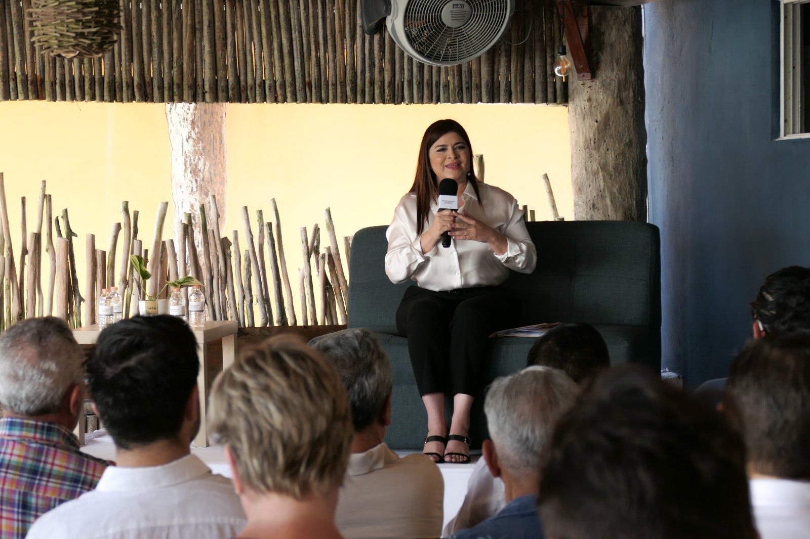 En el día 3 de campaña, ante 56 mujeres y hombres dueños de empresas de gastronomía, comercio, hotelería y desarrollo inmobiliario convocados por Empresarios Quintana Roo que preside Sergio León, la candidata de la alianza PRI-PAN a la Presidencia municipal de Puerto Morelos, subrayó que hoy, de 31 mil 500 portomorelenses, 44.67 por ciento se siente inseguro; «la gente vive con miedo y eso nos lastima profundamente, porque no debe normalizarse el temor, pero también es señal que nuestras propuestas para corregir el rumbo en el municipio son aceptadas, porque Puerto Morelos sí quiere cambiar», agregó en el foro al que acudieron también Marcy Bezaleel Pacheco, titular del colectivo Cocineros Quintana Roo y Armando Alvarado, representante municipal de la Cámara Nacional de la Industria Restaurantera y Alimentos Condimentados (Canirac)