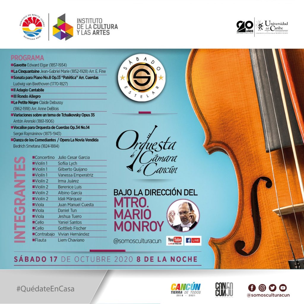 Muestra de ello es el concierto que ofrecerá la Orquesta de Cámara de Cancún, bajo la dirección del Mtro. Mario Monroy, dedicado a la Universidad del Caribe, con motivo de su XX aniversario. El concierto se transmitirá a las 20:00 horas y como el resto de los eventos, a través de la cuenta https://www.facebook.com/ucaribeoficial.