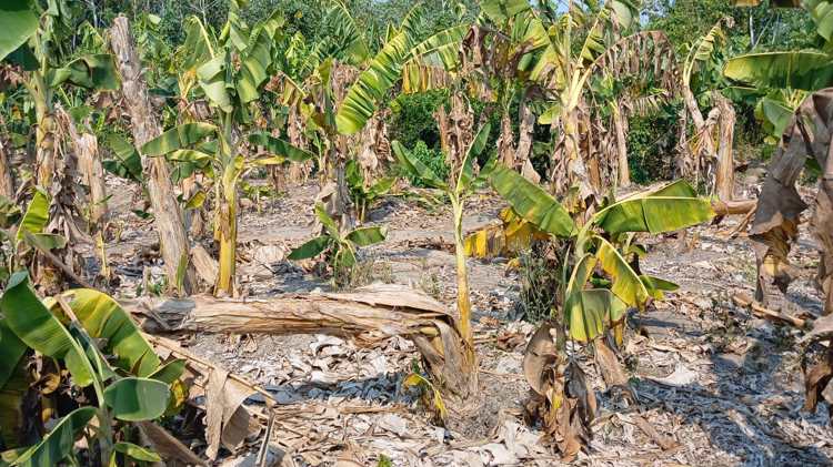 PODER Y CRÍTICA | REDACCIÓN | La intensa oleada de calor y la sequía prolongada han causado estragos en los cultivos de plátano en Cunduacán, Tabasco, donde los pequeños productores reportan la pérdida de entre 500 y 700 hectáreas. Ramiro Morales Yedra, presidente de la Asociación de Platanera del Poblado Cucuyulapa, informó que de las mil 500 hectáreas de plátano macho, manzano y guineo, más del 50% han sido destruidas.
