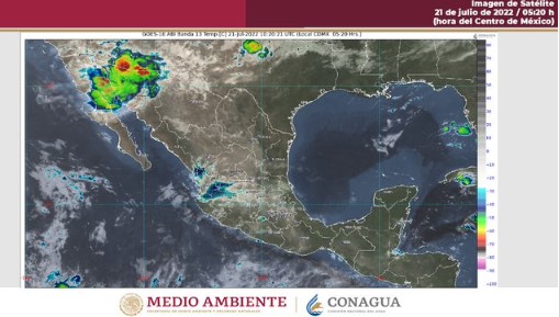 Por su parte, el monzón mexicano producirá lluvias puntuales muy fuertes acompañadas de descargas eléctricas y posible caída de granizo en zonas de Sonora, Chihuahua, Durango y Sinaloa.