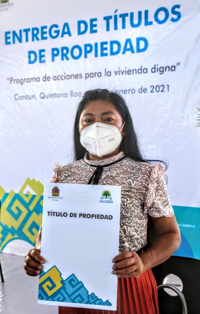A nombre de las siete personas que simbólicamente recibieron su título de propiedad, en el evento con todos los protocolos de salud y en el cual anunciaron que más adelante se entregarán 238 documentos de este tipo para Cancún, la señora María Cristina Lavadores Cuy, agradeció el apoyo para alcanzar la legalidad de su patrimonio y reconoció la labor interinstitucional de las instancias involucradas, como parte de una sinergia entre gobierno y sociedad.