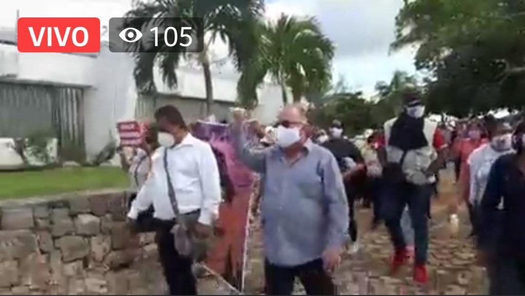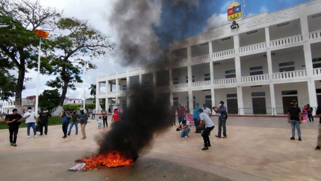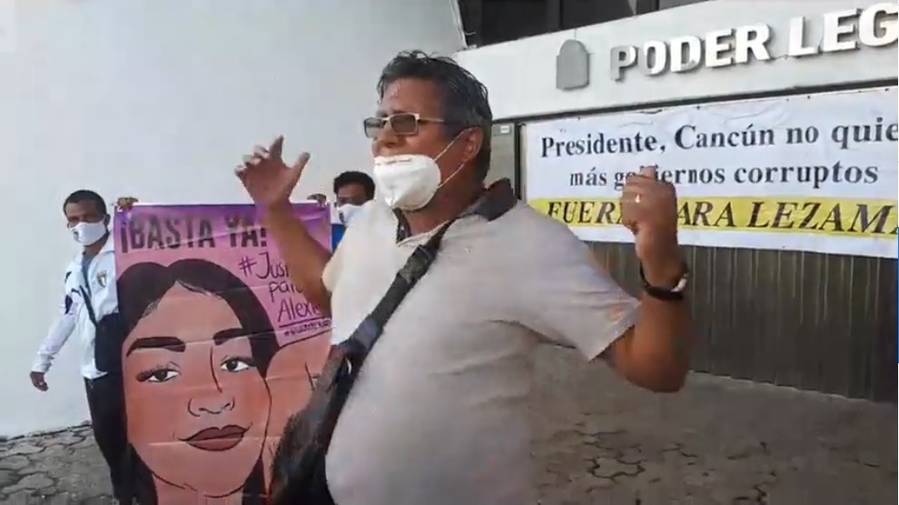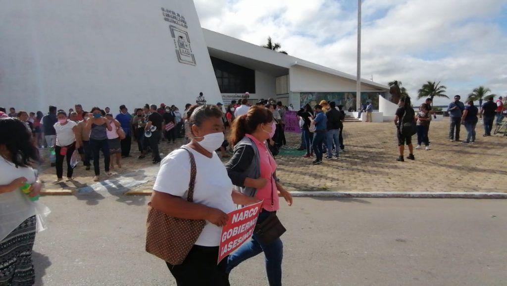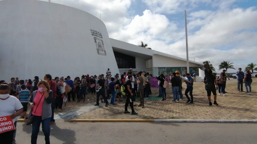 Hoy Kanter estuvo junto a decenas de personas que llegaron a la sede del Congreso del Estado, que se ubica sobre el bulevar “Bahía” de Chetumal, para exigir la renuncia (licencia) de servidores públicos en el estado.