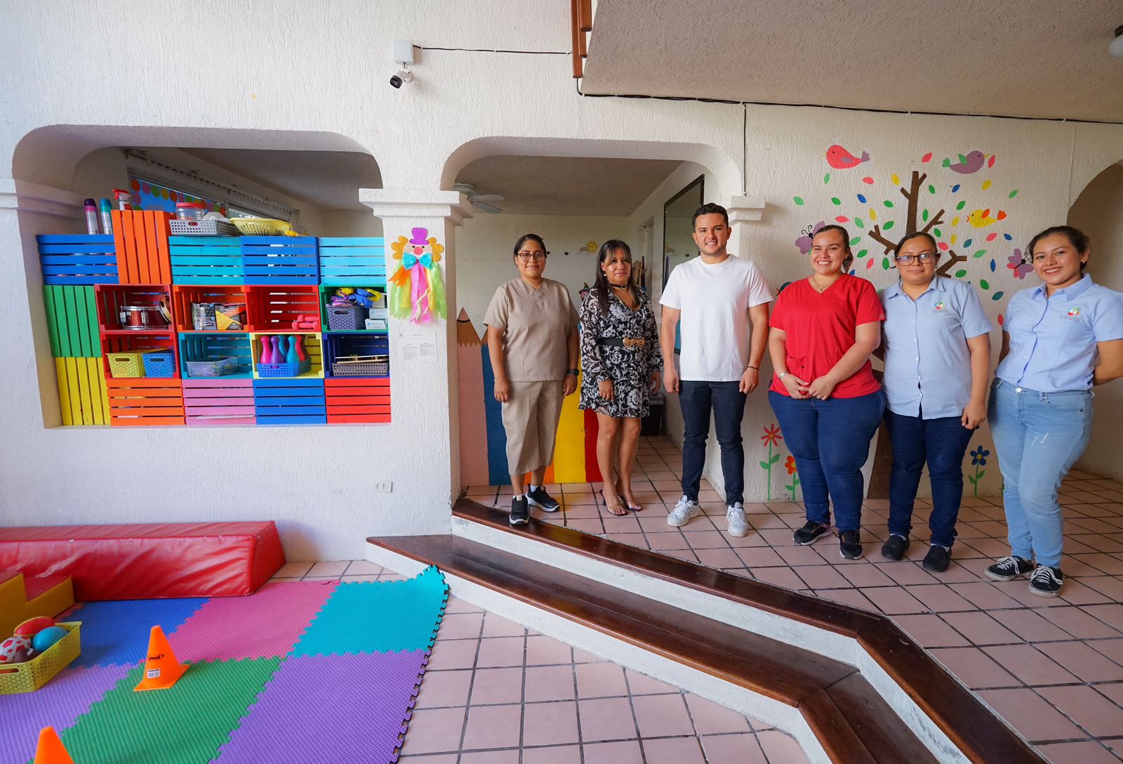 En recorrido por las instalaciones, Pablo Bustamante y la presidenta de la asociación, Yolanda Flores Cedillo, dialogaron sobre los programas y acciones que realizan desde Pasitos de Gigantes Cancún, que busca incluir de manera adecuada a niñas y niños con discapacidad, tomando en cuenta sus necesidades y diversas formas de aprendizaje.