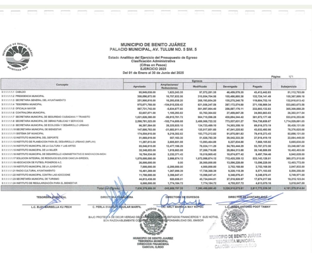 Pablo Gutiérrez, con datos del Ejercicio del Presupuesto de Egresos del 2024 se le aprobaron para la Secretaría del Ayuntamiento 194 millones de pesos y terminó utilizando 325 millones, durante el primer semestre de este 2025 ya dispuso de 135 millones 275 mil pesos de un total de 251 millones 900 mil pesos aprobados para ese periodo y se presume que al finalizar este año la suma supere los 350 millones de pesos según documentación oficial del propio ayuntamiento consultados por Poder y Crítica, ciudadanos han denunciado que estos recursos se habrían sido utilizados para financiar y beneficiar a operadores políticos y medios de comunicación.