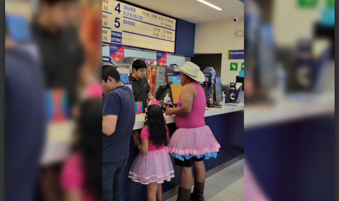 PODER Y CRÍTICA | REDACCIÓN | En una inusual y emotiva muestra de amor paternal, un padre de Nuevo Laredo no dudó ni un segundo en vestirse de “Barbie” para complacer el inocente deseo de su pequeña hija. La singular pareja acudió al cine para disfrutar juntos del estreno de una película que ha conquistado la taquilla desde su primer día de exhibición.